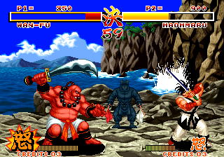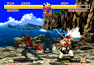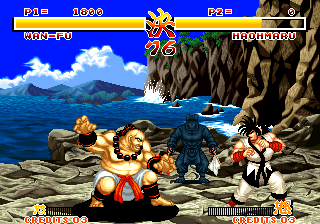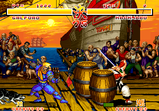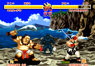 今までランダムでそういう状況が起こるのかと思っていたが、どうやらこれはボタン入力によって発生しているようだ 推測としては「鍔迫り合いで(武器を落さない)という判定結果になった場合、鍔迫り合いが終了する瞬間にボタンが入力されていると地上で技が出る」 あくまで色々やってみた上での推測ね? でもボタン入力で発生するのは間違いない模様 ボタンを押さなければ絶対に発生しない 基本的には押したボタンの通常技が出る レバーを下方向に入れていればしゃがみ技が出る レバーを前に入れていて、なおかつ相手も地上にいた場合には投げが出る これを利用するとちょっと面白いことができる 鍔迫り合い中はレバーを下に入れつつ小足を連打 小足払いなど隙の少ない技を鍔迫り合い後に出すことができれば、後ろに飛び退いた相手にジャンプ攻撃での追撃が間に合ったり 覇王丸だったら相手の着地前に斬鉄が入ることも… しかし連射器使っても安定しない上に、やっぱりランダム要素も関わってくるので実戦投入できるかというと… まあ出ればラッキー程度に考えた方がいいか |